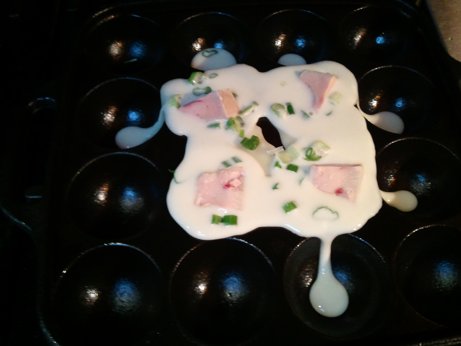 and heres what I TRIED to make. Foie-yaki balls. Chunks of foie and green onions